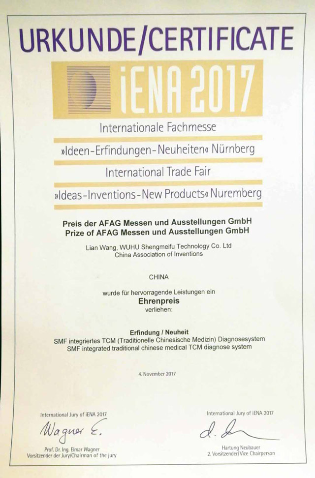 公司于2011年獲得國家科技部頒發(fā)的中小型科技創(chuàng)新基金;同年5月榮獲產(chǎn)品注冊證,填補(bǔ)了國內(nèi)中醫(yī)診斷設(shè)備的空白。